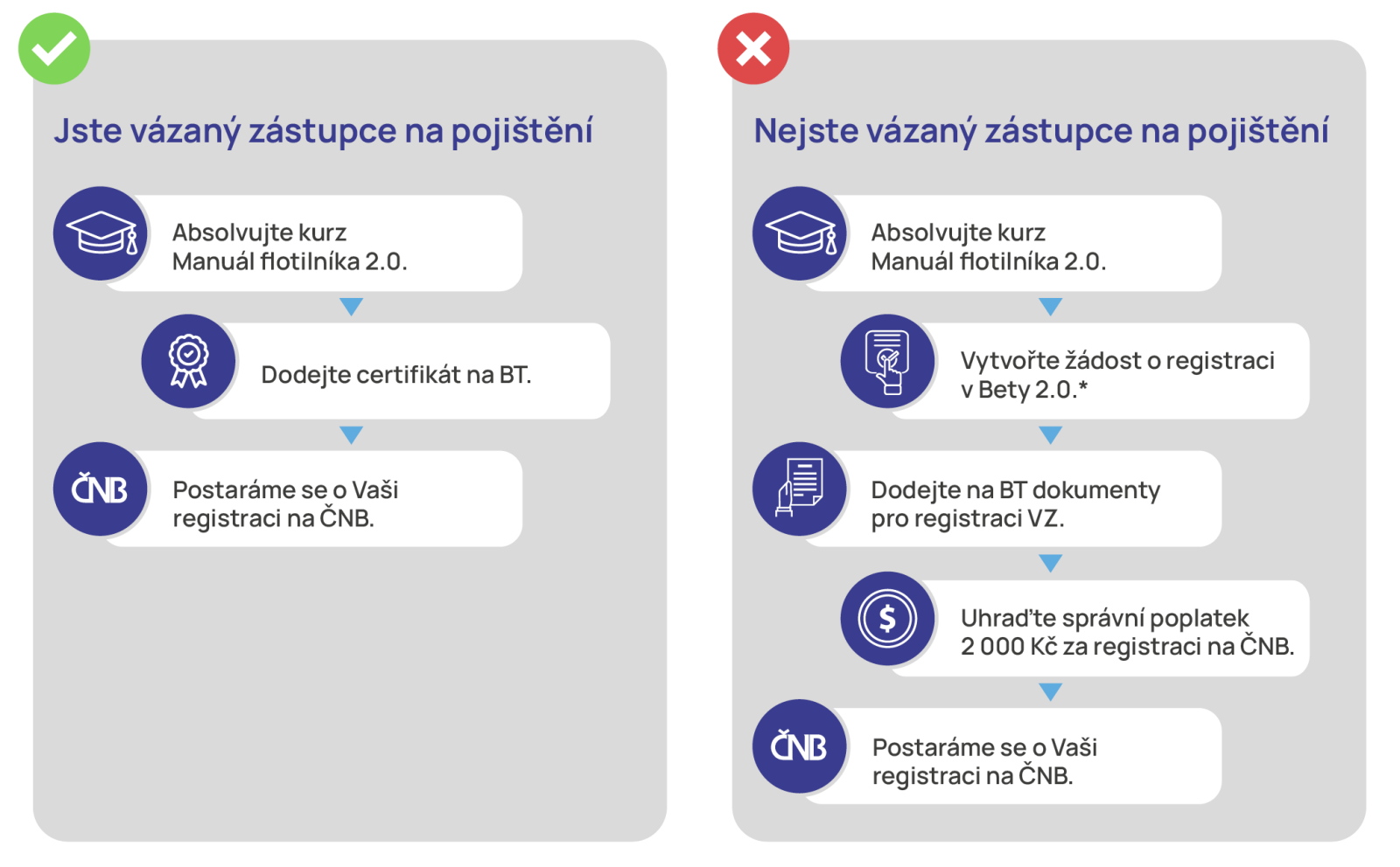Ne. Pokud chcete zprostředkovávat úvěry vč. pojištění, je nutné splnit si certifikační zkoušku Manuál flotilníka 2.0 a zároveň být vázaný zástupce na pojištění u BT. Tím pádem nemůžete být vázaný zástupce na pojištění pod jinou společností.